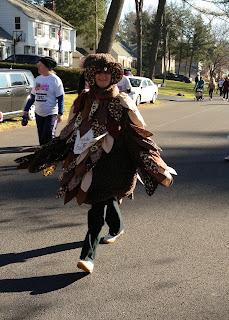 The Man and I took part in the Our Towne Bethlehem Turkey Trot this morning. The Man ran the 5K course, and I walked it...dressed as the Five Rivers owl (that was kind of a last minute decision).